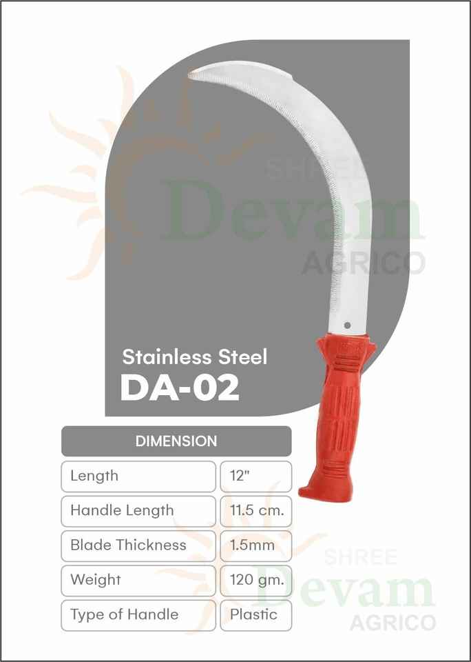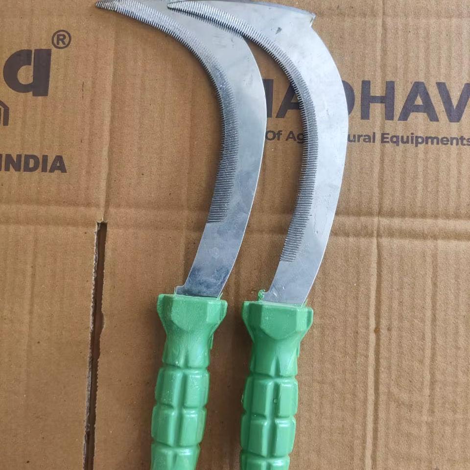 Herramienta Agrícola y de Jardinería de Alta Calidad Shree Devam Agrico, Hoz para Césped con Piedra de Afilar, Hoja de 11 Pulgadas, Mango de Madera y Plástico, Zincado