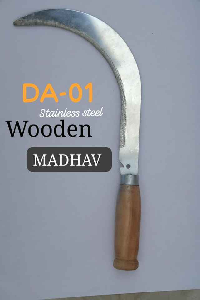 Herramientas Agrícolas y de Jardinería de Alta Calidad, Hoz para Césped con Piedra de Afilar, Hoja de 11 Pulgadas, Acabado de Óxido Negro Galvanizado, Mango de Madera y Plástico