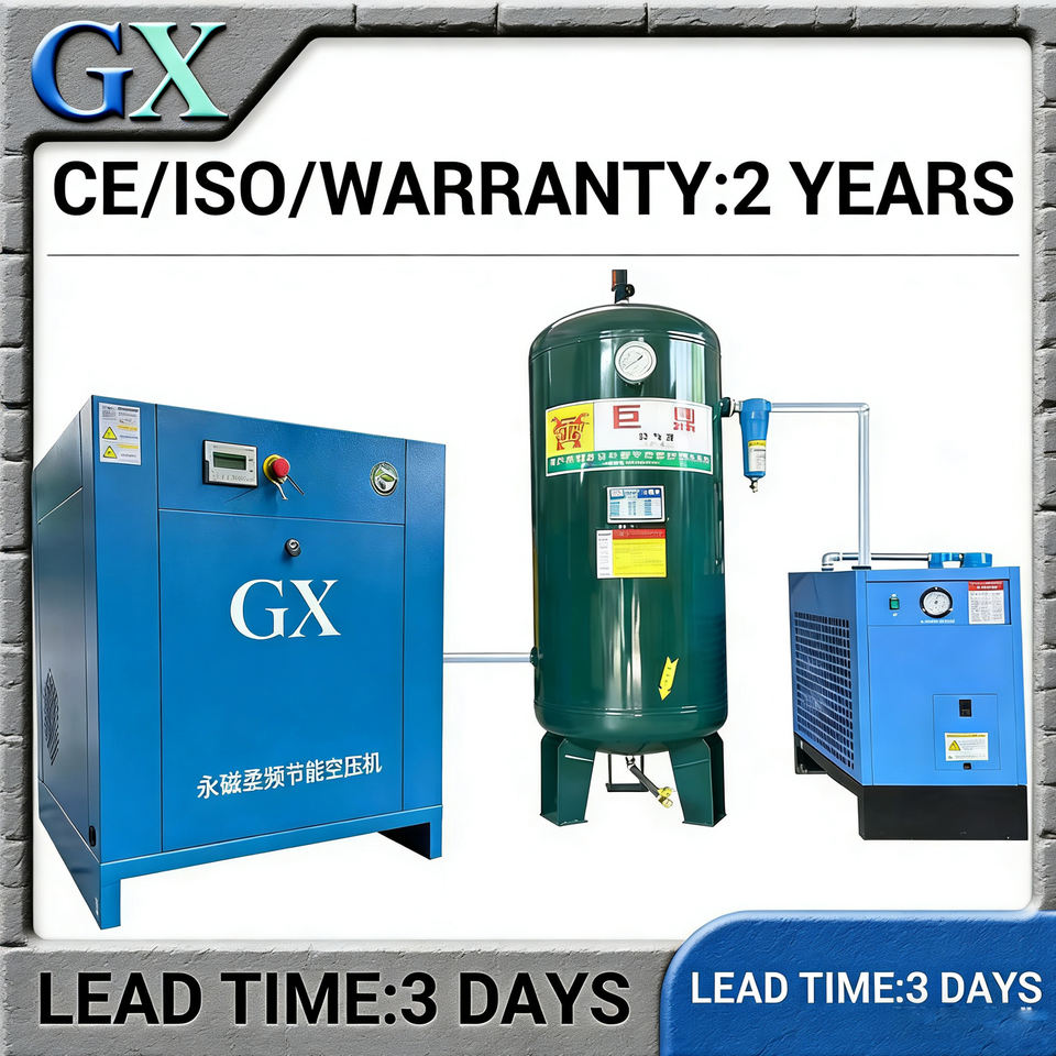 Compresor de Aire Estacionario de Tornillo Sin Aceite Guxing de Alta Calidad, Refrigerado por Aire, con Motor de 7.5-75kw y 8-16bar