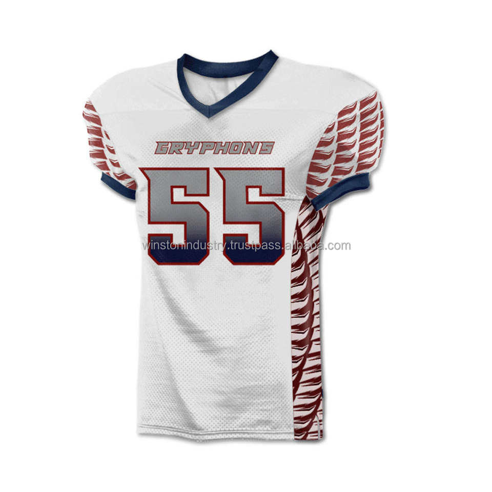 Uniforme de fútbol americano de alta calidad, ropa deportiva, aparejos para adultos, sarga, conjunto de camisetas de fútbol americano con diseño de sublimación acolchado
