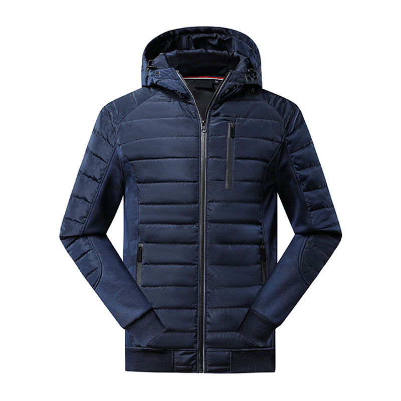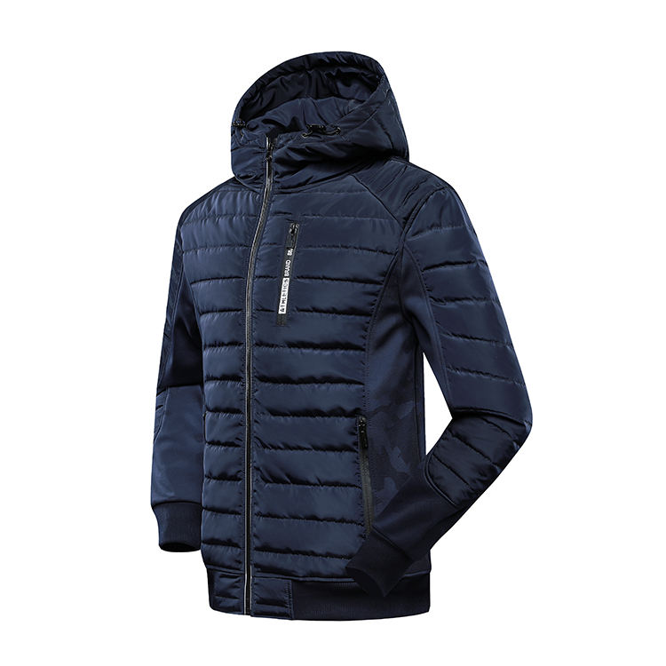 Chaqueta gruesa con cremallera para hombre, ropa deportiva de alta calidad, con etiqueta privada, informal, para correr, azul marino, acolchada, para invierno