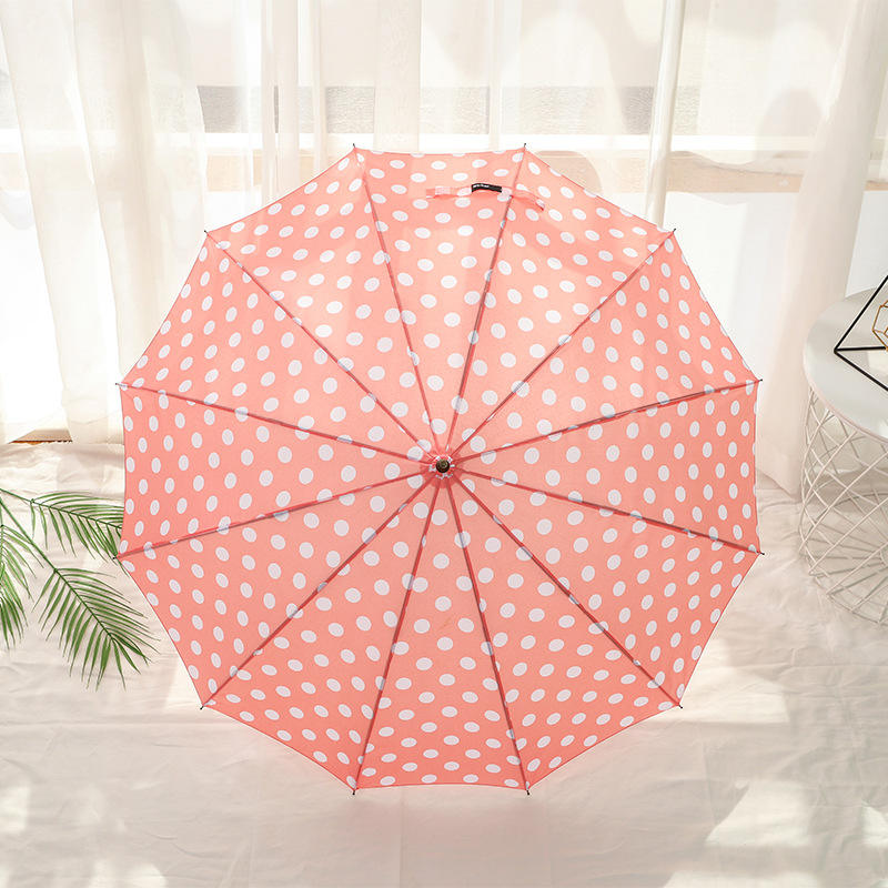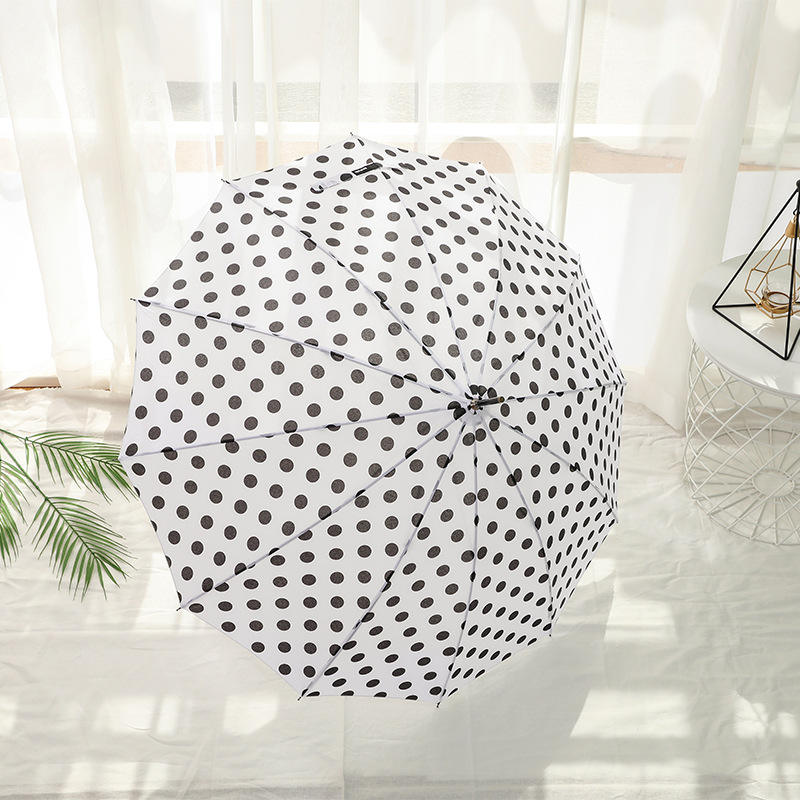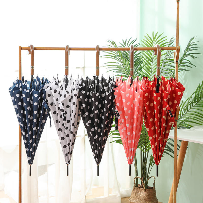 Nombre:Elegante Polka Dot automática paraguas recto con empuñadura curva