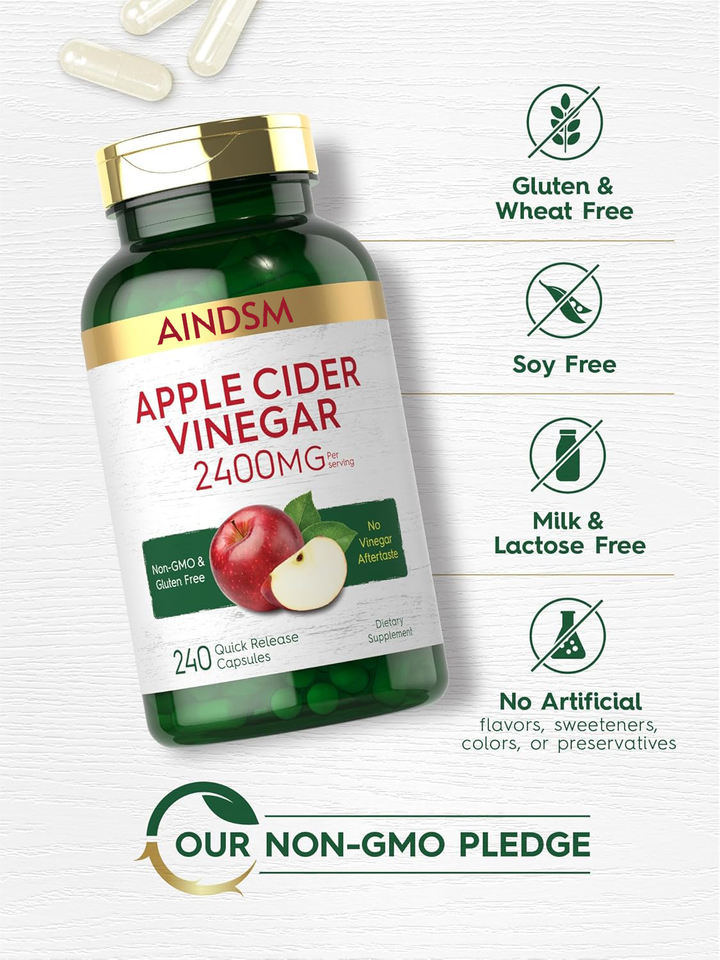 Cápsulas de Vinagre de Sidra de Manzana de Alta Calidad, Vitamina que Promueve la Digestión, Cápsulas Adelgazantes, Quemador de Grasa, Pérdida de Peso, Cápsulas de ACV para la Salud