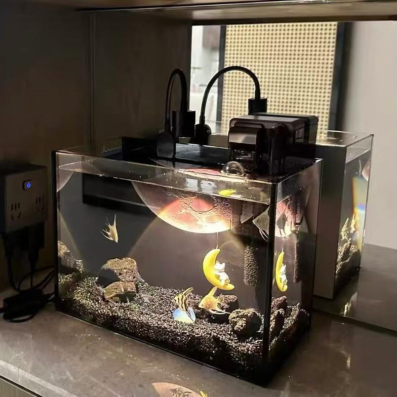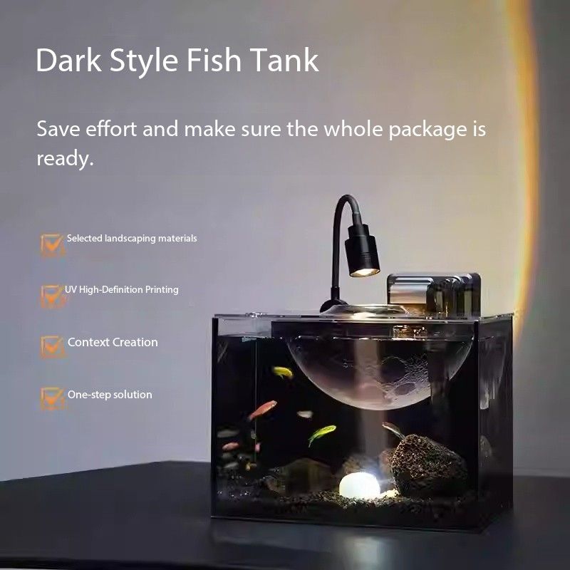 Acuario de Alta Calidad con Fondo Personalizado de Luna, Peceras Pequeñas para Peces Vivos con Filtro y Luz