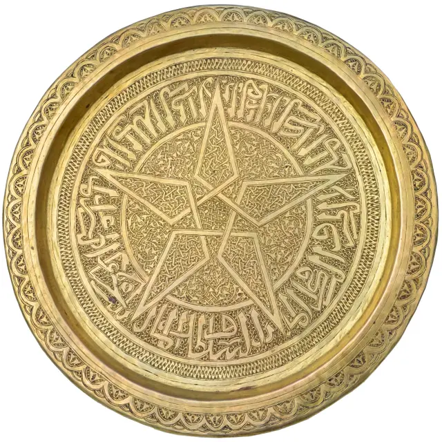 Plato Redondo Árabe de Latón de Alta Calidad con Grabado y Acabado Pulido para Uso en la Cocina y como Plato Decorativo