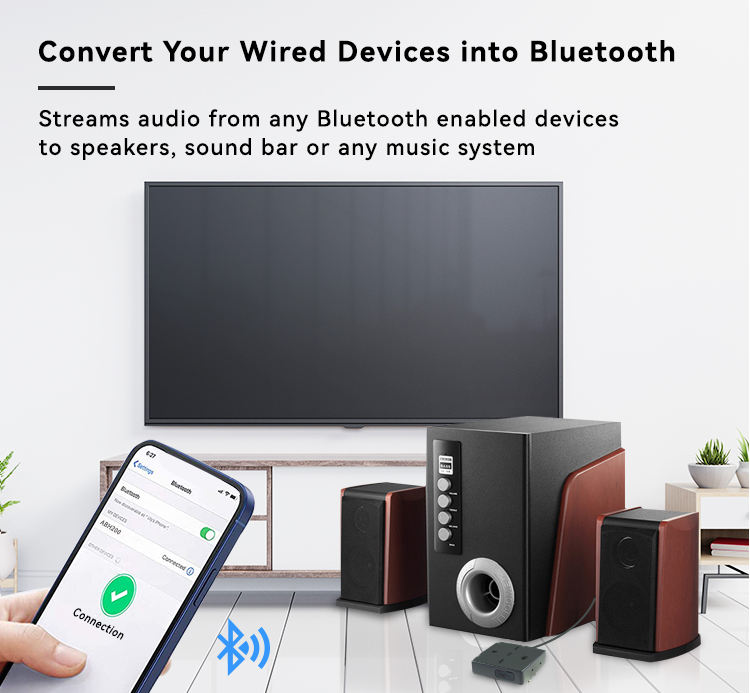 Transmisor de Audio de Alta Calidad, Bluetooth 5.2 Inalámbrico, Función NFC, Adaptador Receptor de Música