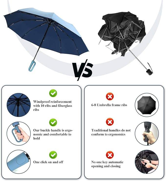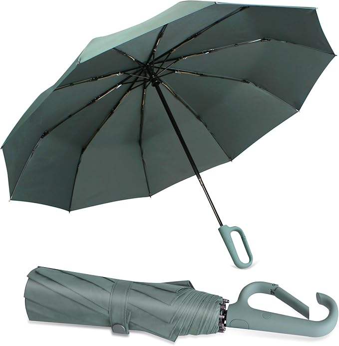 Paraguas Plegable de Alta Calidad, Apertura Automática, 23 Pulgadas, Compacto, Nailon 190T, 10 Varillas, Mango con Anillo LED, Resistente al Viento, Colorido