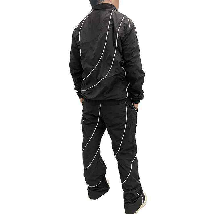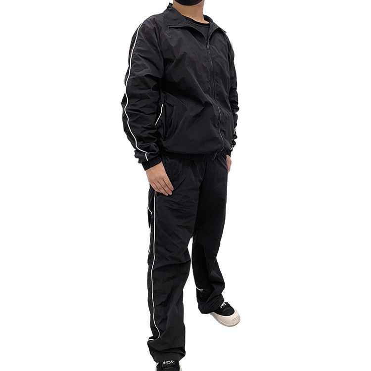 Conjunto de Pantalones Anchos Holgados Colorblock NEGRO de Alta Calidad y Chaqueta Ligera, Conjunto Deportivo para Hombre de Talla Grande, Resistente al Viento, de Nailon
