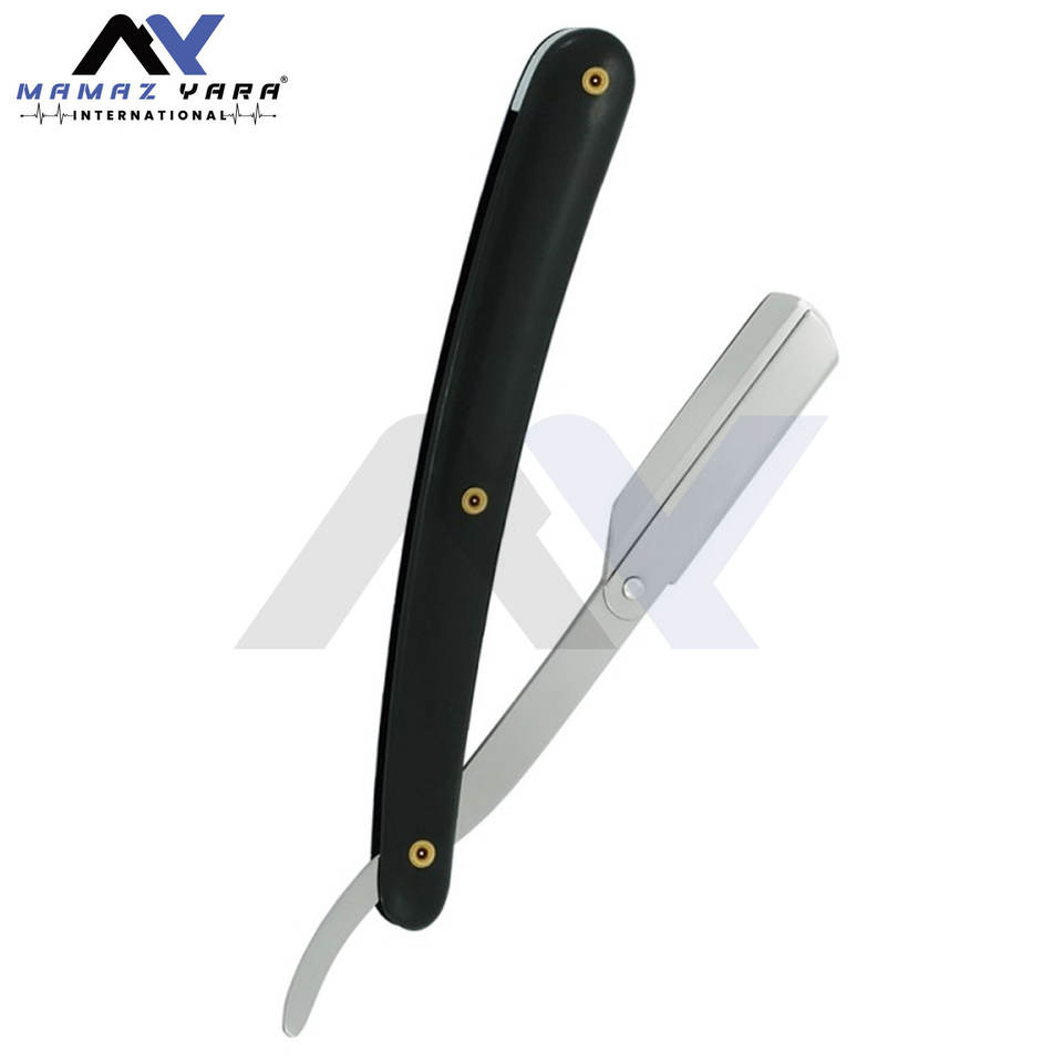 Navaja de Barbero de Alta Calidad, Acero Inoxidable, Bloqueo Oscilante, Mango de Plástico Negro Plateado, Profesional, de Hoja Recta