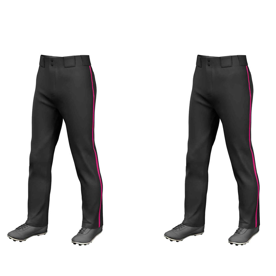 Pantalones de béisbol de alta calidad para hombres Color negro y cierre de botón con forro rojo Pantalones de equipo de béisbol para adultos de longitud completa