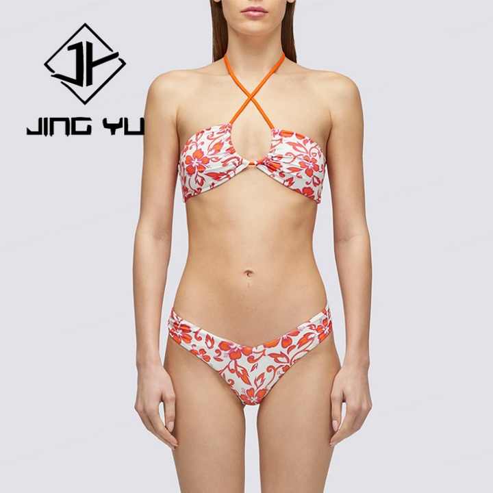 Traje de Baño de Alta Calidad, Diseño de Lujo con Estampado, Tirantes Halter, Elástico, OEM, Conjunto de Traje de Baño de Nailon