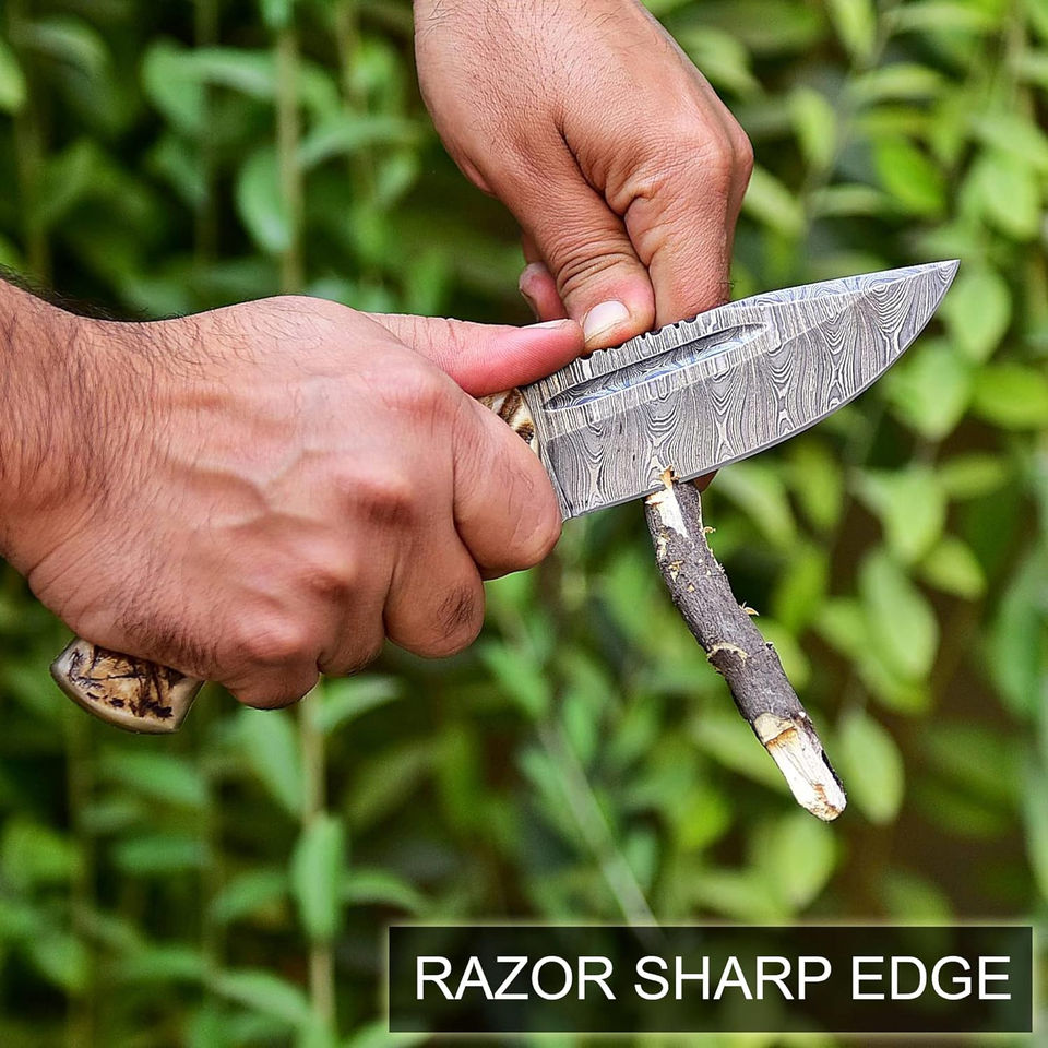 Cuchillo de Caza y Camping de Acero de Damasco Hecho a Mano de Alta Calidad, Hoja Forjada Fija, OEM, Alta Durabilidad, Grado Industrial