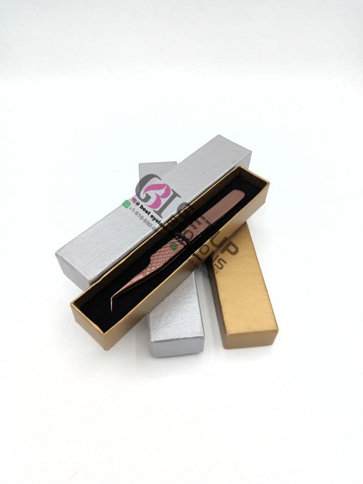 Pinzas de extensión de pestañas con agarre de diamante de Plasma de oro rosa de 45 grados de alta calidad, instrumento de belleza con logotipo personalizado de acero inoxidable