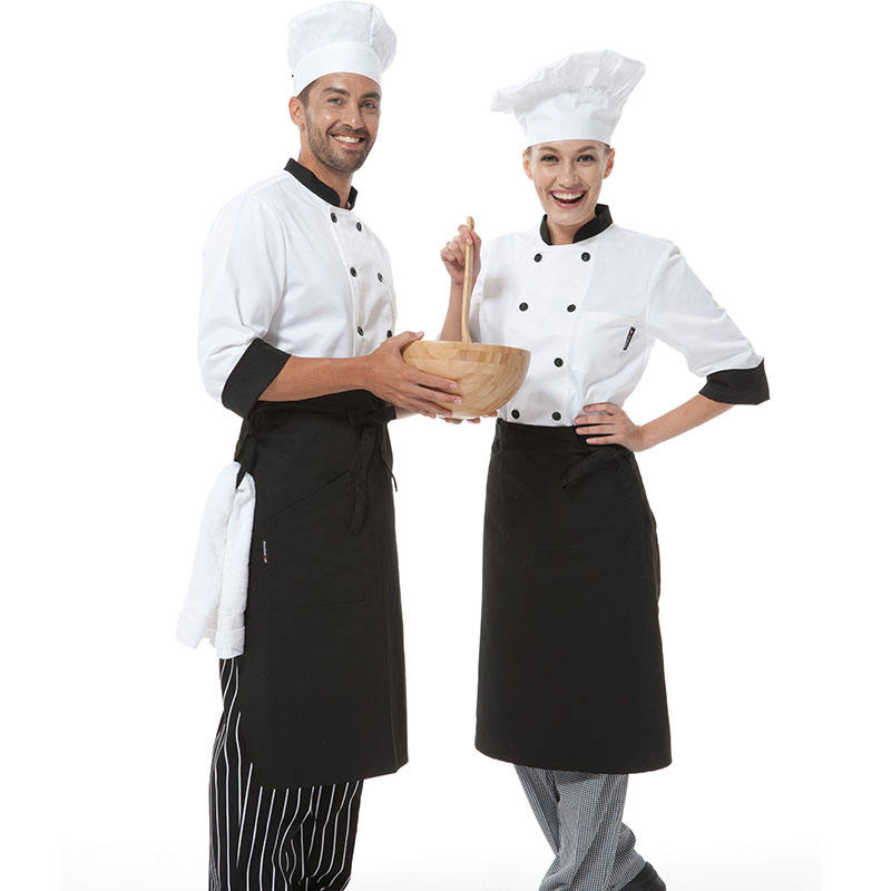 Delantal de chef negro de alta calidad, cubierta de cintura de cocina, chaqueta de Chef de mezclilla, uso en restaurante, nuevo delantal de cocina de algodón y poliéster
