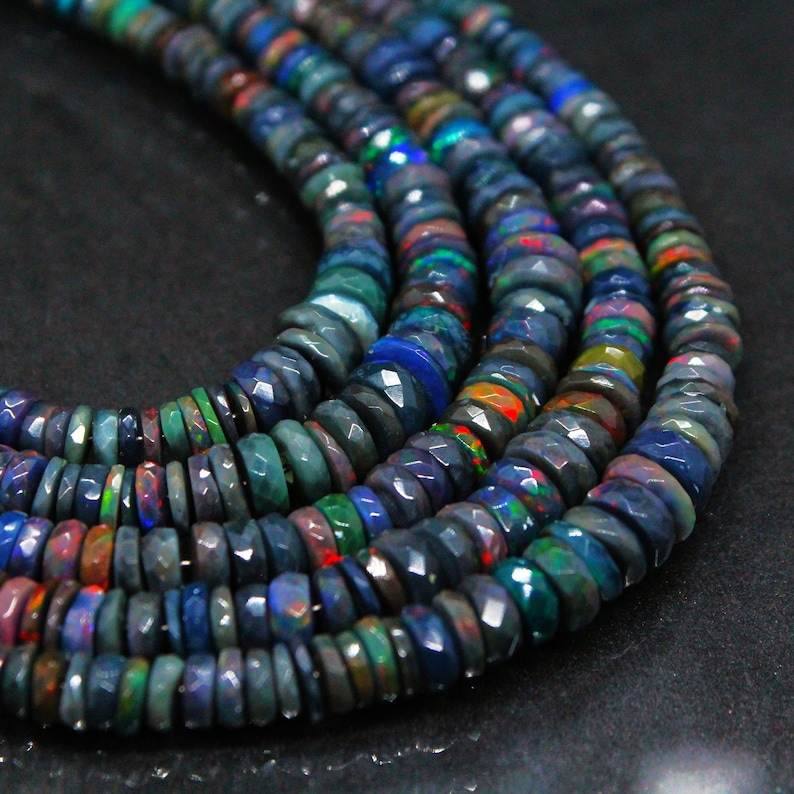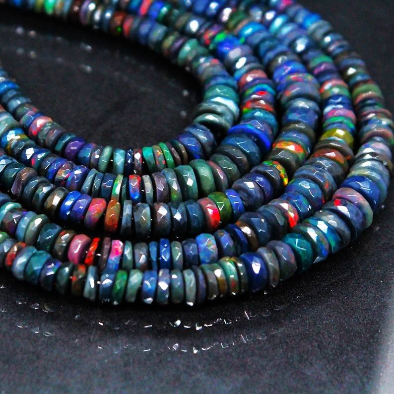Product name:Black Ethiopian Opal Faceted Heishi Shape Beads