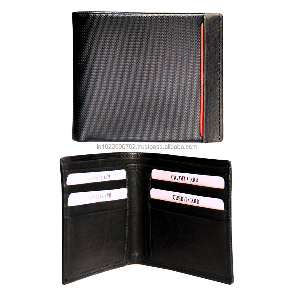 Cartera de hombre de cuero genuino negro de alta calidad Cierre de pliegue Delgado logotipo personalizado minimalista tarjetero RFID al por mayor