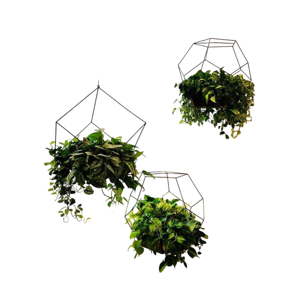 Macetas de hierro con revestimiento de polvo negro de alta calidad, macetas colgantes de pared, diseño atractivo, macetas colgantes decorativas para el hogar a la venta