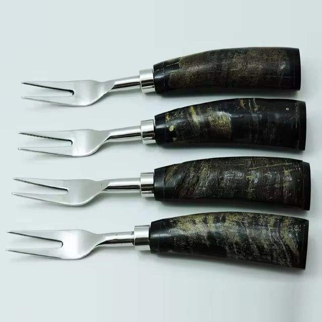 Juego de cubiertos con mango de cuerno Ruff de acero inoxidable negro de alta calidad, utensilios de mesa de nuevo estilo para bodas