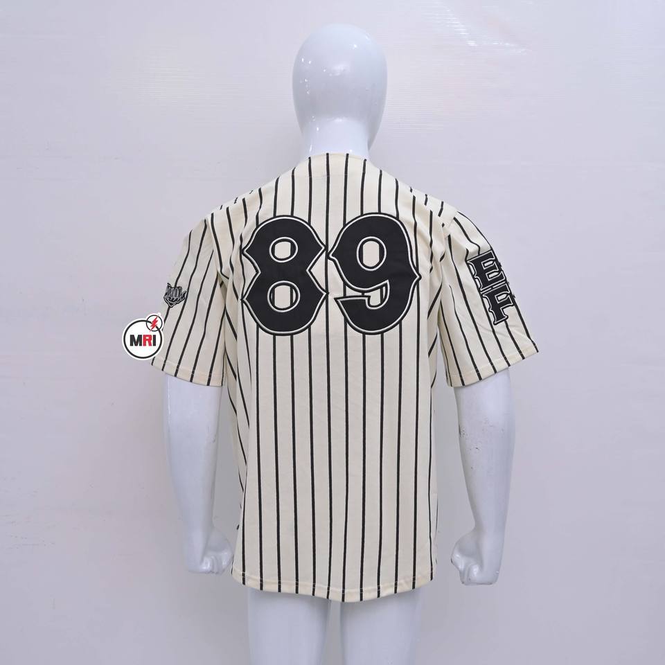 Béisbol de rayas negras de alta calidad para ropa informal, Jersey de algodón holgado transpirable y a la moda con logotipo bordado de rayas para hombre