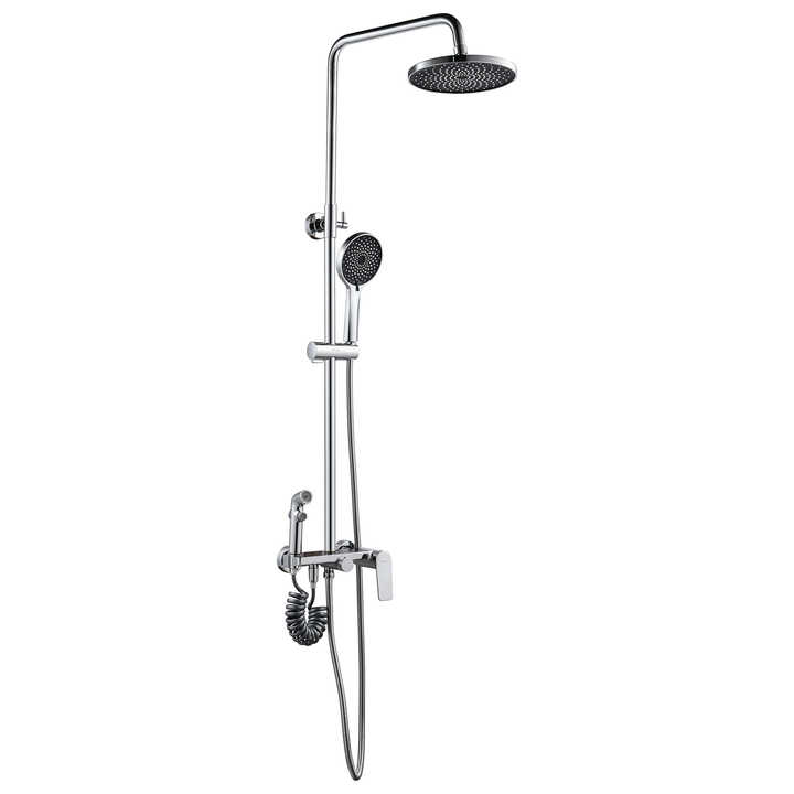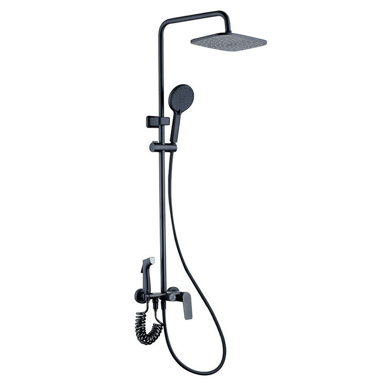 Mezclador de baño montado en la pared negro de alta calidad, cabezal de ducha de bidé, sistema completo de lluvia de 4 vías, juego de ducha de cerámica con placa de roca