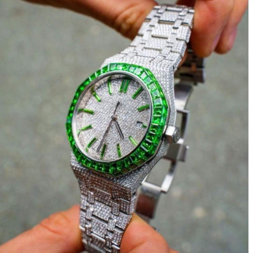 Nombre del producto:Reloj de moissanita VVS con incrustaciones de diamantes, pasa el probador de diamantes