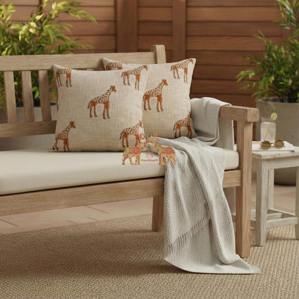 Funda de Cojín de Algodón con Estampado de Jirafa de Alta Calidad para Decoración del Hogar y Hoteles