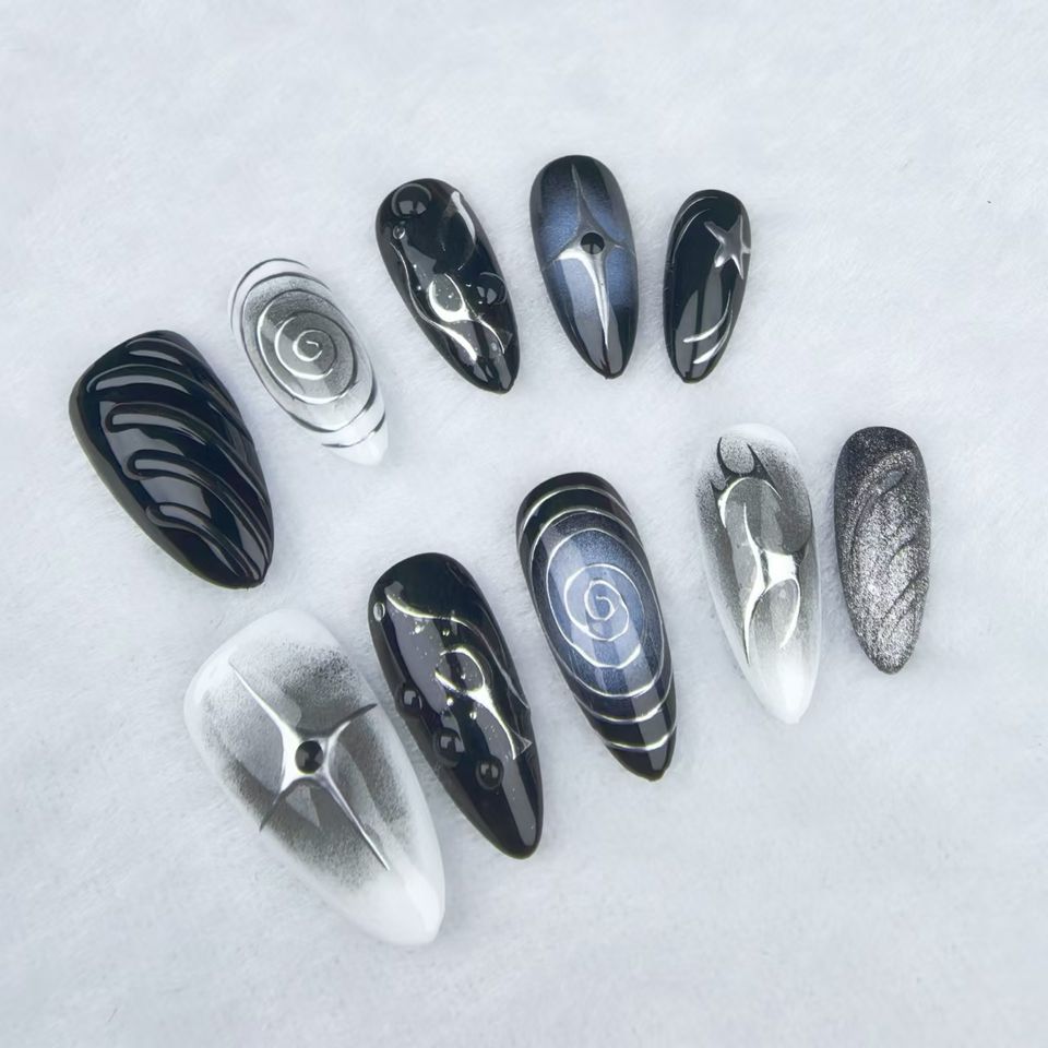 Alta calidad azul almendra Metal cromo efecto pintado a mano uñas postizas de la oscuridad