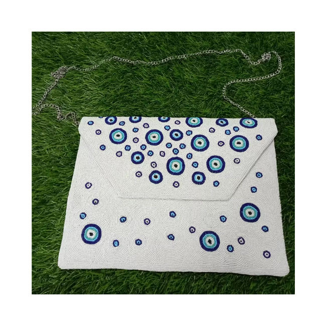 Bolso de Mano de Algodón con Cuentas Azules y Diseño de Ojo Turco, para Mujer, Elegante y Protector