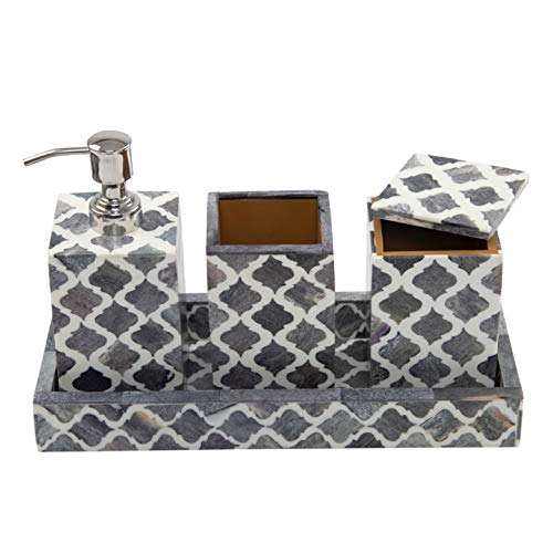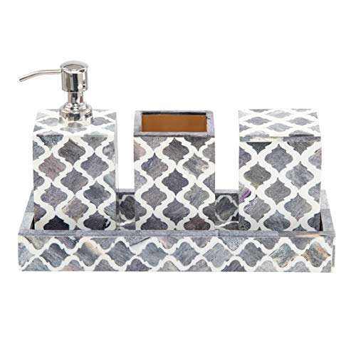 Juego de baño de alta calidad con incrustaciones de hueso, de 4 piezas, para hotel, con dispensador de jabón, soporte para cepillos de dientes y personalización de productos de baño.