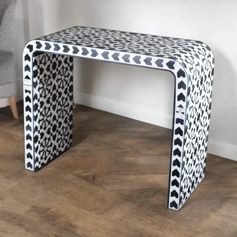 Mesa de consola de escritorio con incrustaciones de hueso de alta calidad, mesa de centro con incrustaciones de hueso, muebles de sala de estar con incrustaciones de hueso, precio al por mayor