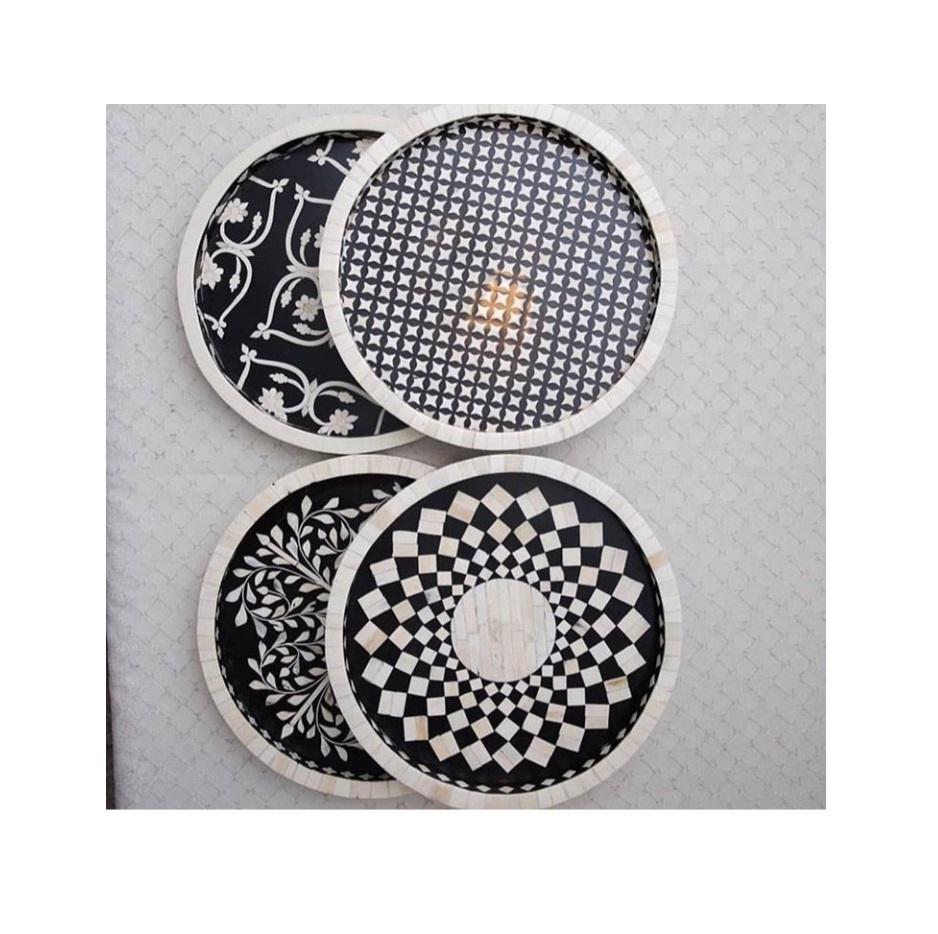 Bandeja para servir con incrustaciones de hueso de alta calidad, platos decorativos para desayuno, Bandejas para servir Chocolate de estilo marroquí personalizadas, Decoración de mesa