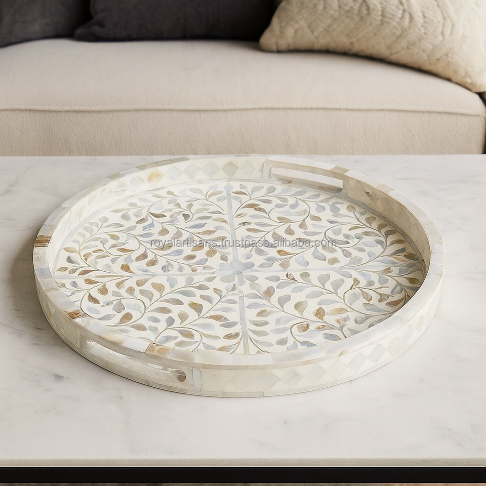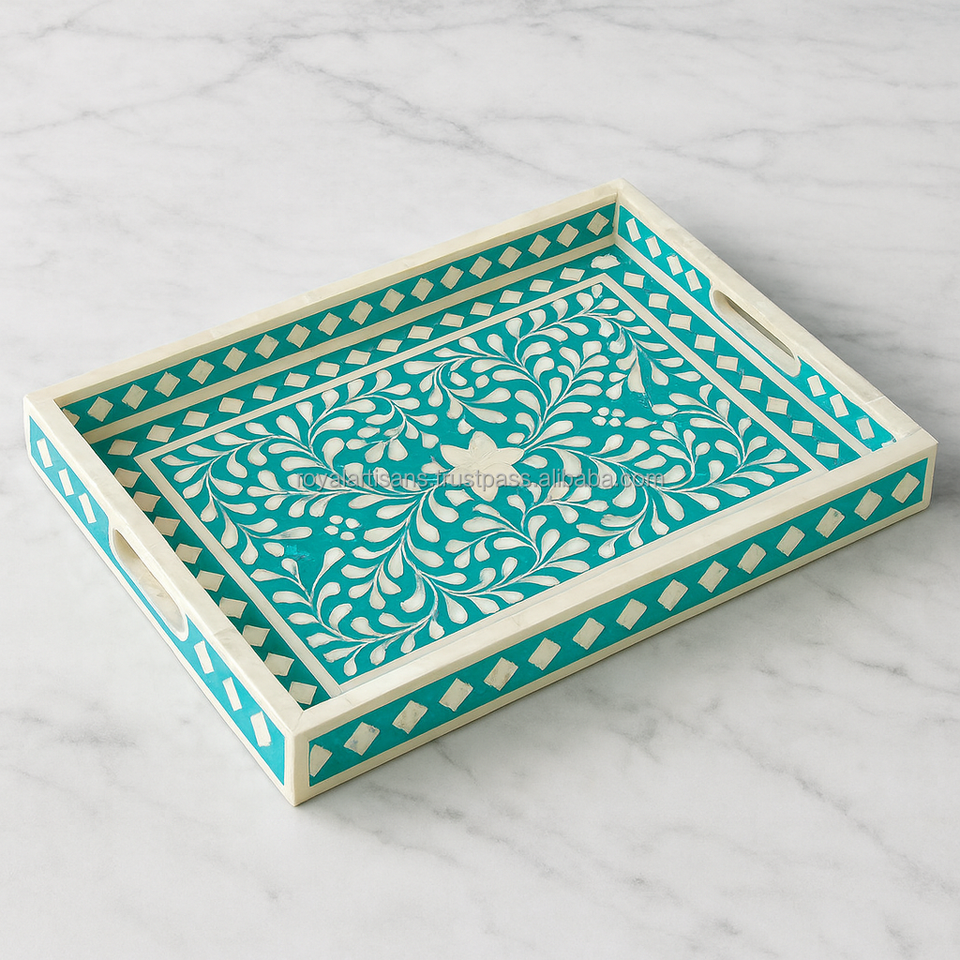 Bandeja Decorativa de Alta Calidad con Incrustaciones de Hueso, Hecha a Mano, Calidad de Exportación, Incrustaciones de Resina, Producto de Decoración para el Hogar