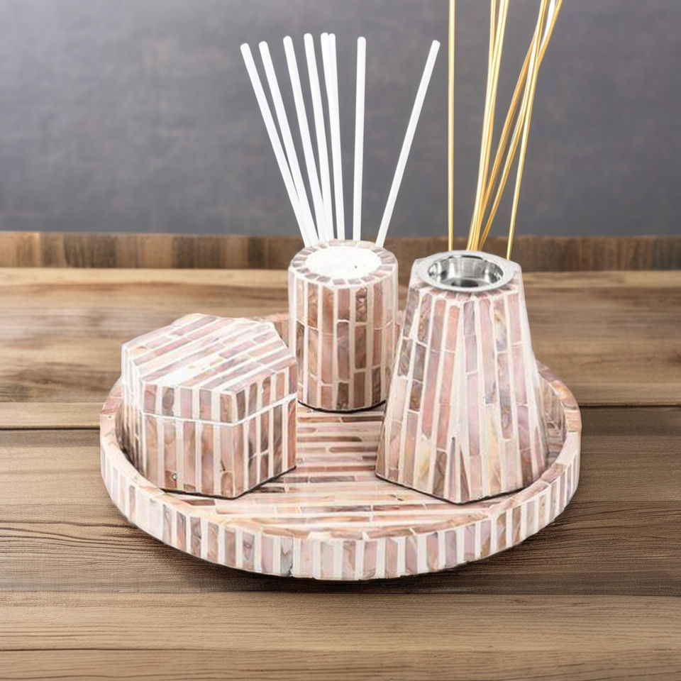 Incrustaciones de hueso de alta calidad y madreperla incienso árabe/quemador de Oud Mubkhar con bandeja y caja de dulces a precio atractivo