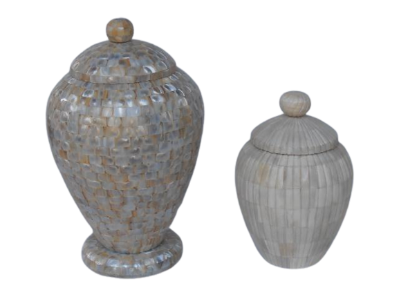 Jarrón de Madera de Alta Calidad con Incrustaciones de Hueso y Madreperla para Decoración del Hogar, Disponible en Todos los Tamaños con Acabados Decorativos