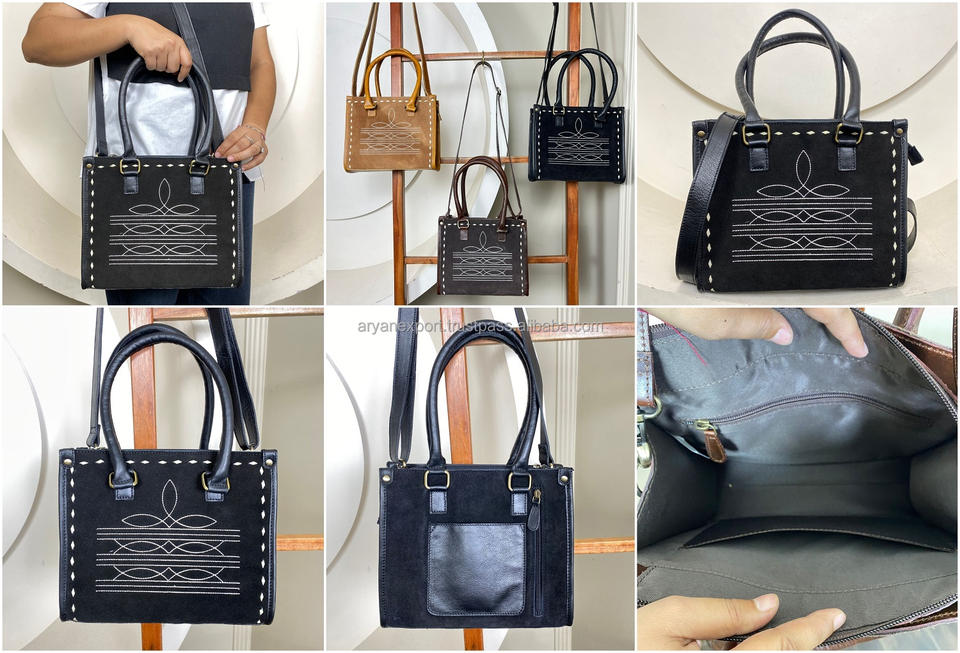 Nombre del Producto:Bolso Tote de Cuero de Ante Occidental