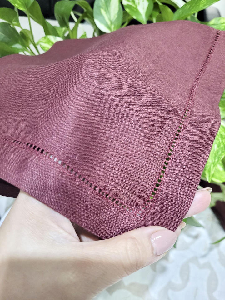 Servilleta de mesa Hemstitch de color burdeos de alta calidad, servilletas de cena de lino liso al por mayor personalizadas para eventos de Hotel en casa