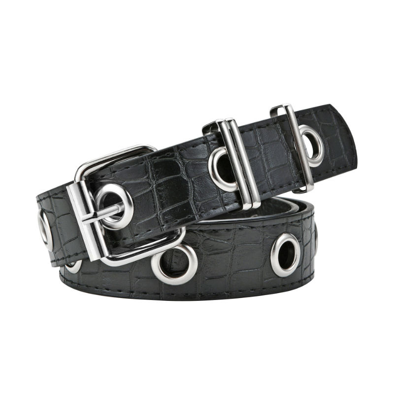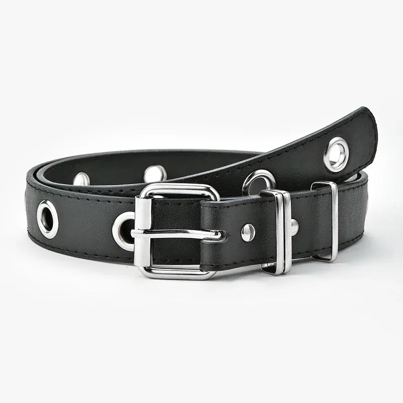 Cinturón vaquero informal de piel de vaca de ambos lados de alta calidad, hebilla de aleación de estilo de vestido que combina con Todo negro