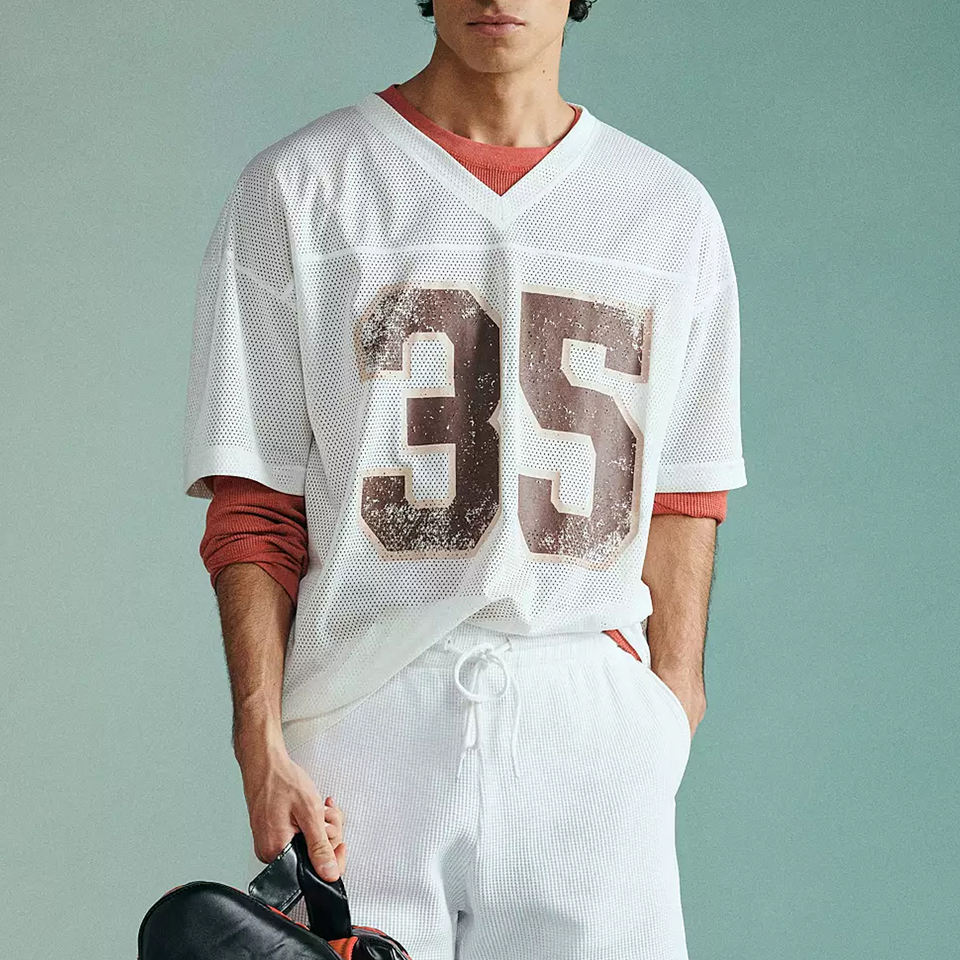 Nombre del producto:Jersey de malla con cuello en V Top hombres