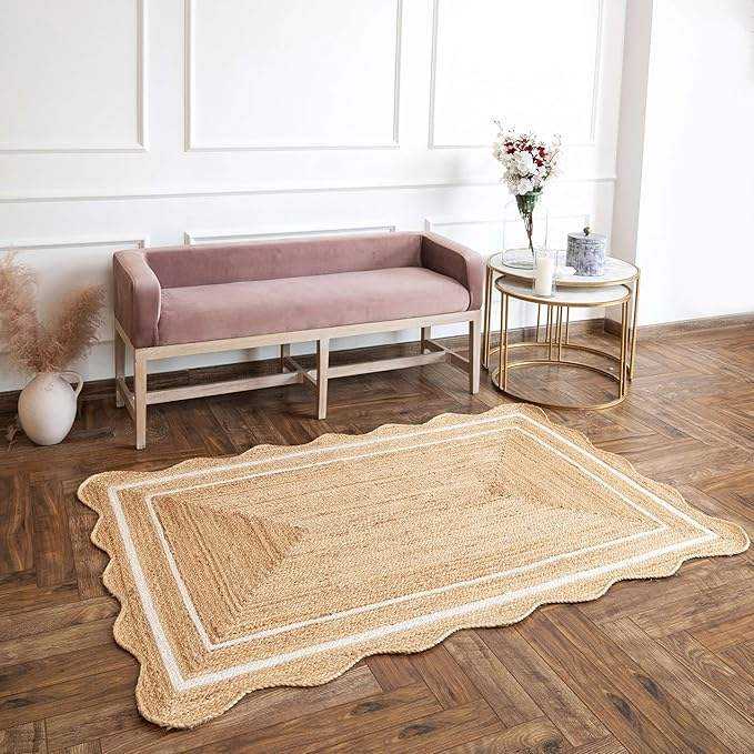Alfombras y Tapetes de Yute Trenzado de Alta Calidad, Alfombra Rectangular de Yute Natural Tejida a Mano con Borde Festoneado a Precio Económico