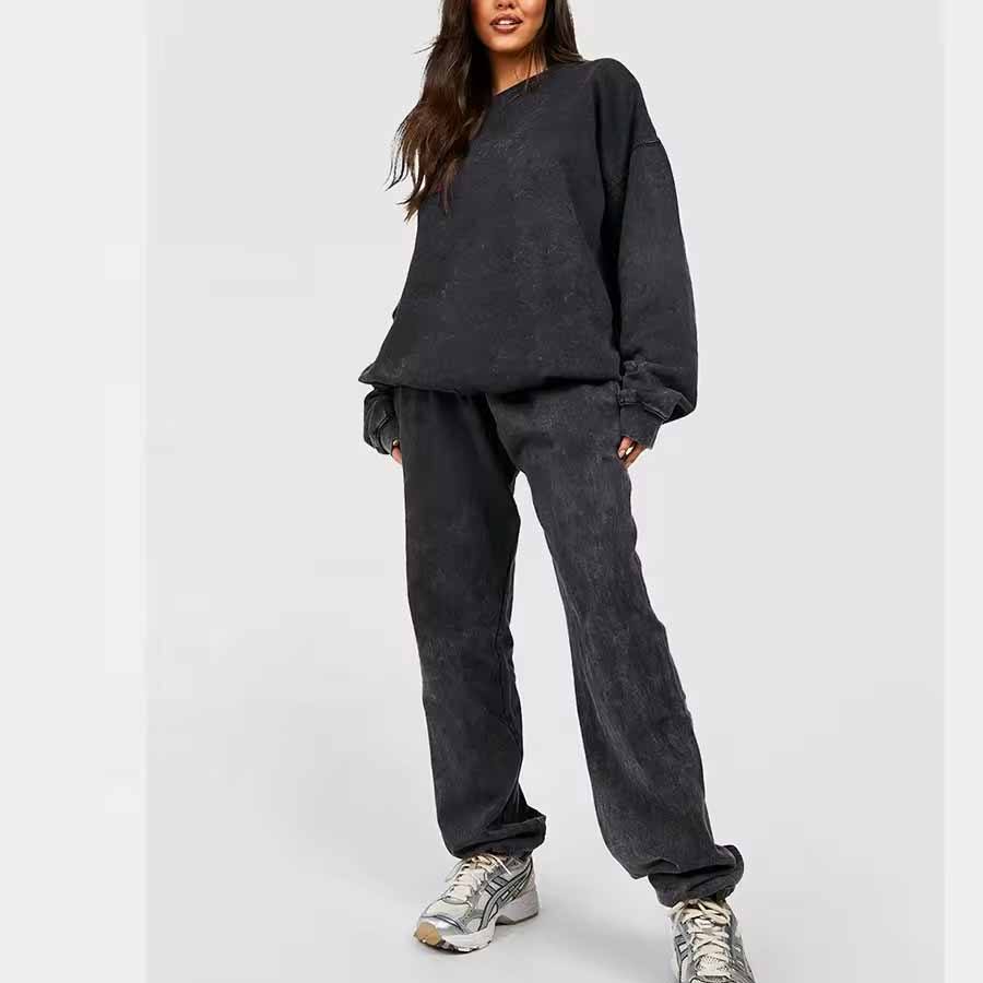 Chándales de invierno de lavado ácido de algodón transpirable de alta calidad, diseño con capucha, detalles de diamantes de imitación, logotipo personalizado, secado rápido ecológico