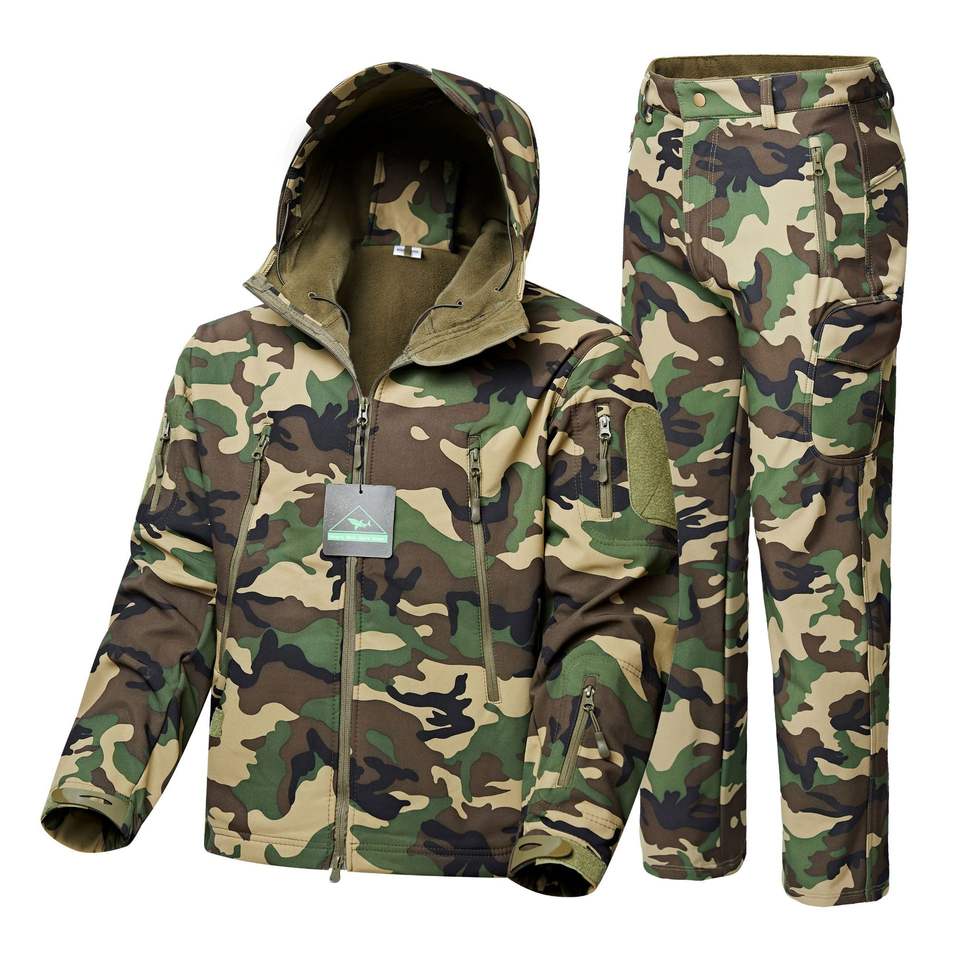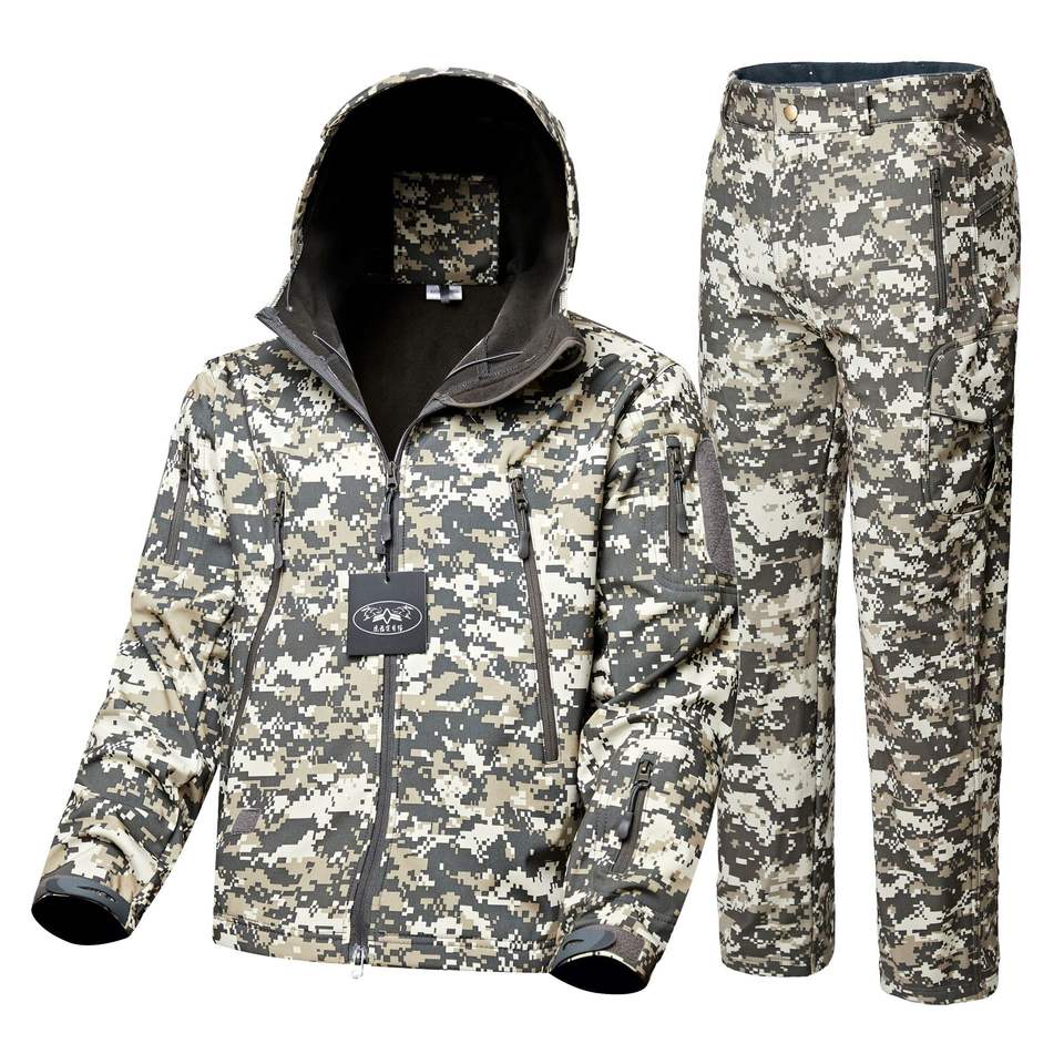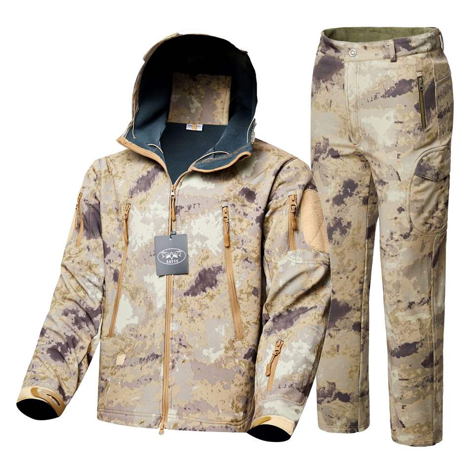 Alta calidad transpirable personalizado impermeable Camo Softshell pato caza ropa pantalones y chaqueta camuflaje ropa hombre
