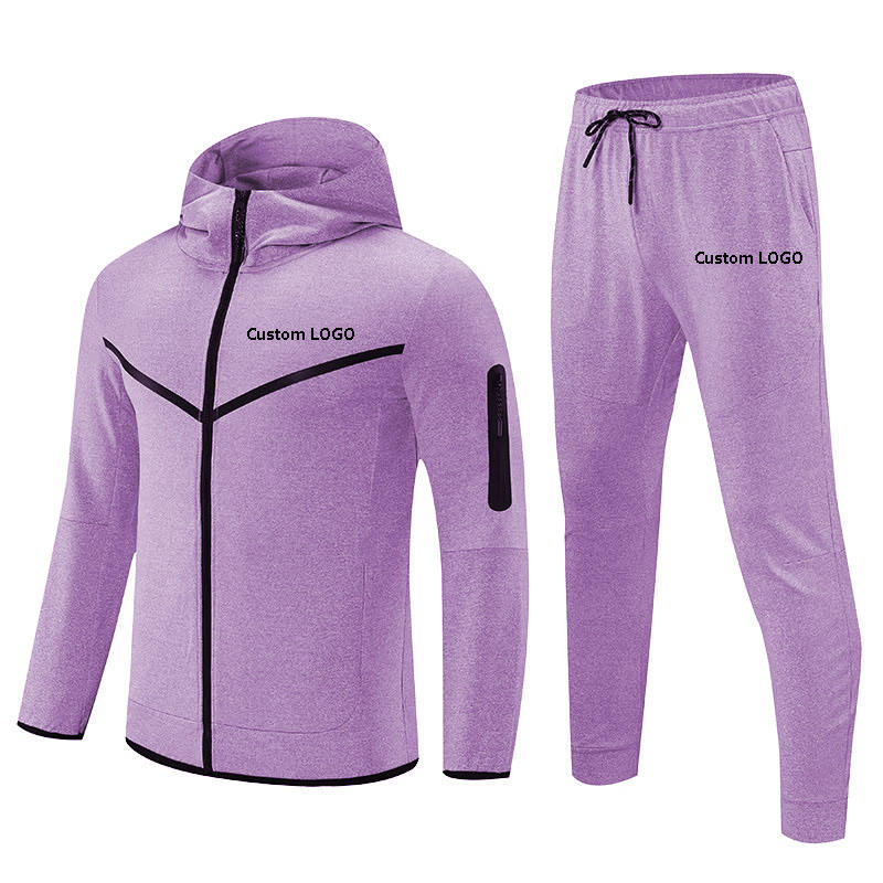 Alta calidad brillante colorido hombres Unisex chándal con capucha Jogger conjuntos adultos 100% poliéster otoño peso pesado a prueba de viento