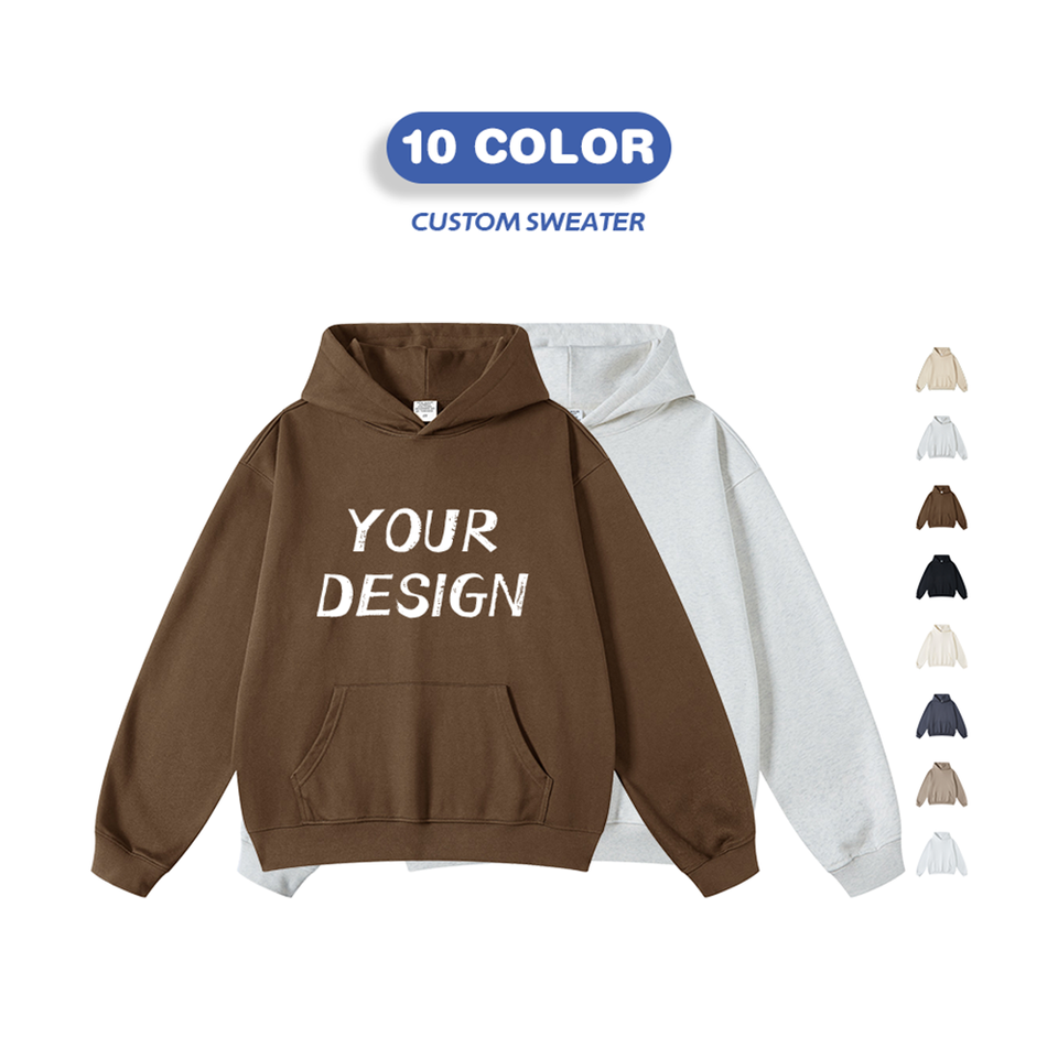 Sudadera con capucha en blanco de lujo marrón de alta calidad, ropa de calle con estampado abullonado, jersey de hombro caído sin cuerda personalizado, sudaderas con capucha lisas para hombre
