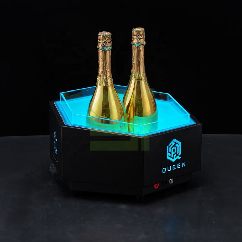 Cubos de alta calidad, caja de champán, dos botellas, cubos enfriadores, cubo de hielo iluminado con luz LED