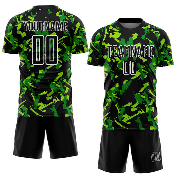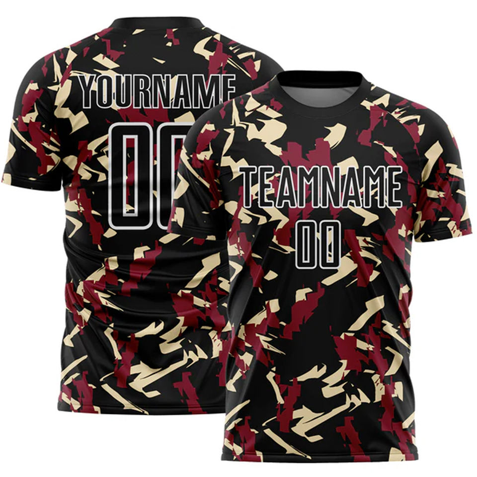 Uniforme de Fútbol con Patrón de Camuflaje de Alta Calidad, 240 GSM, Poliéster Interlock, Impresión Personalizada de Nombre y Número