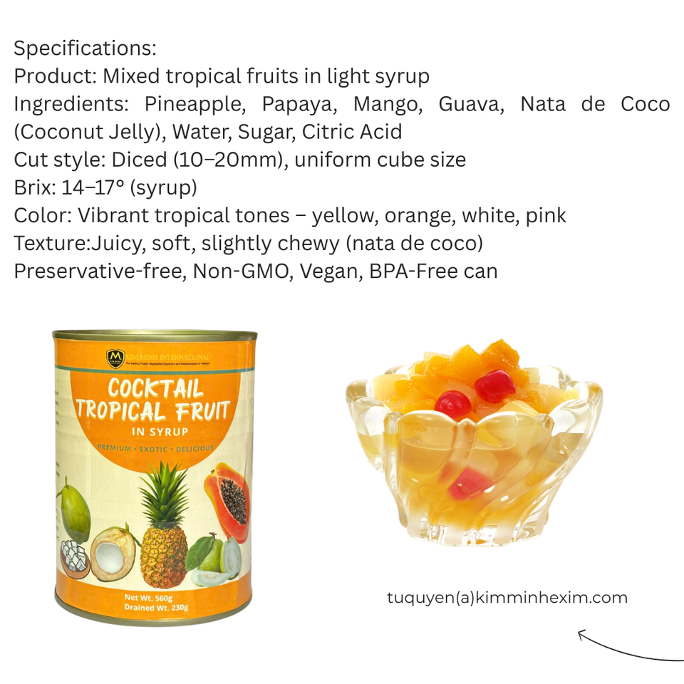 Mezcla de frutas tropicales en almíbar ligeroEspecificación