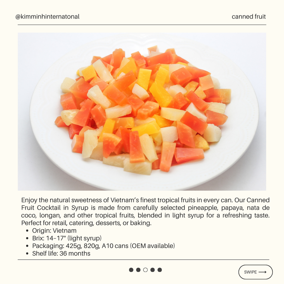Ingredientes:Pineapple, Papaya, Mango, Guava, Nata de Coco