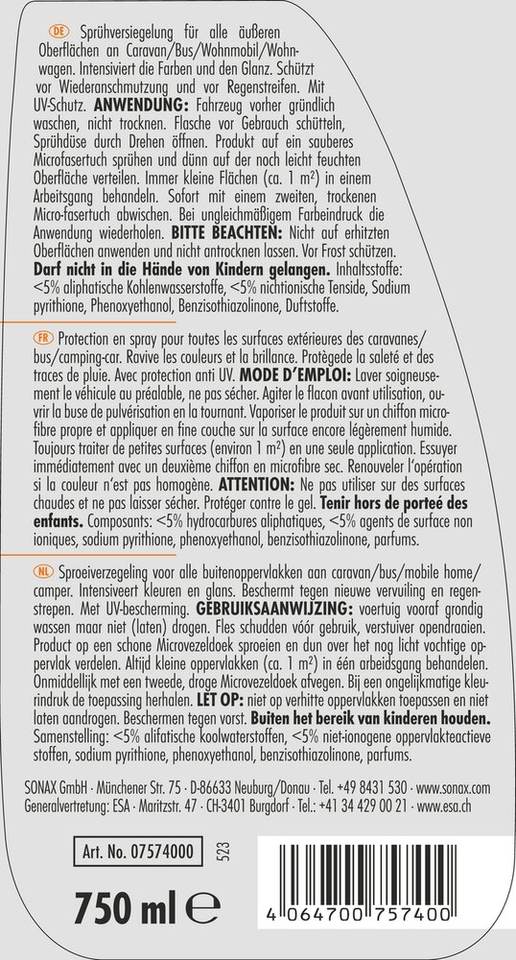 Revestimiento de Sellado Rápido de Alta Calidad para Caravanas 750ml Limpiador Especial Protección y Renovación del Color para Coche