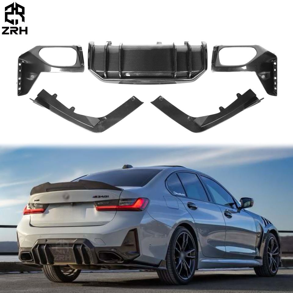 Difusor Trasero de Fibra de Carbono de Alta Calidad Estilo FD para BMW Serie 3 G20 G21 Touring 330i M340i LCI 2023+, Labio para Parachoques Trasero