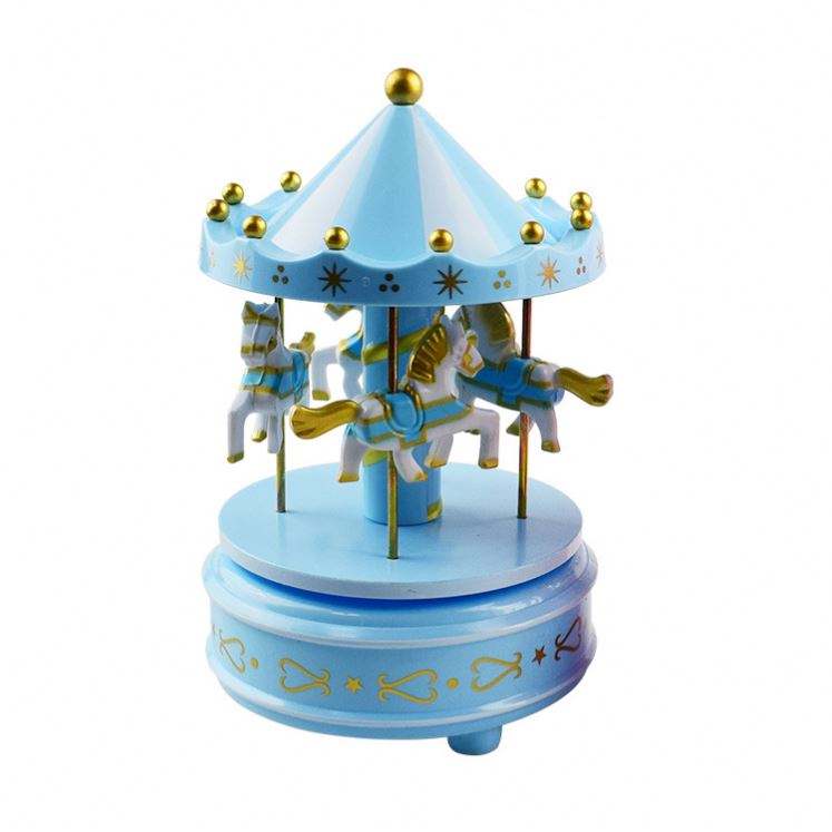Caja de música de caballo de carrusel de madera de alta calidad, regalo de logotipo personalizado hecho a mano con batería para Navidad, boda, cumpleaños, decoración